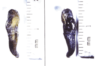 Uma explicação pode ser formulada com base no fato de que esses espécimes foram extraídos de um corpo, onde qualquer peça de ferro incrustada dentro de um tecido pode possivelmente causar uma reação de calcificação.